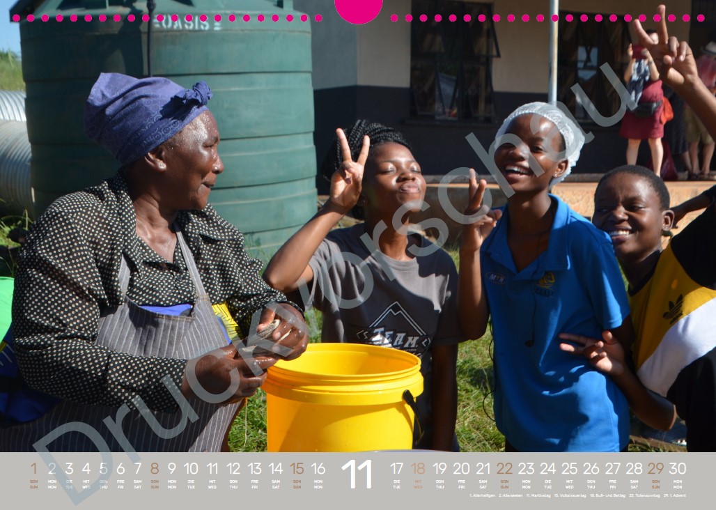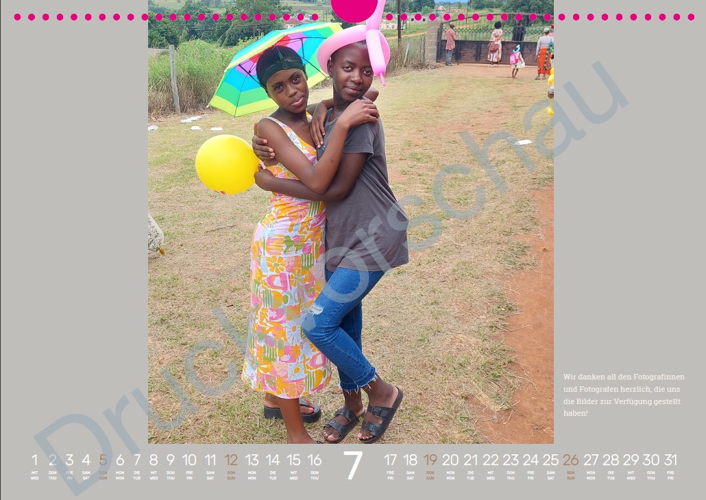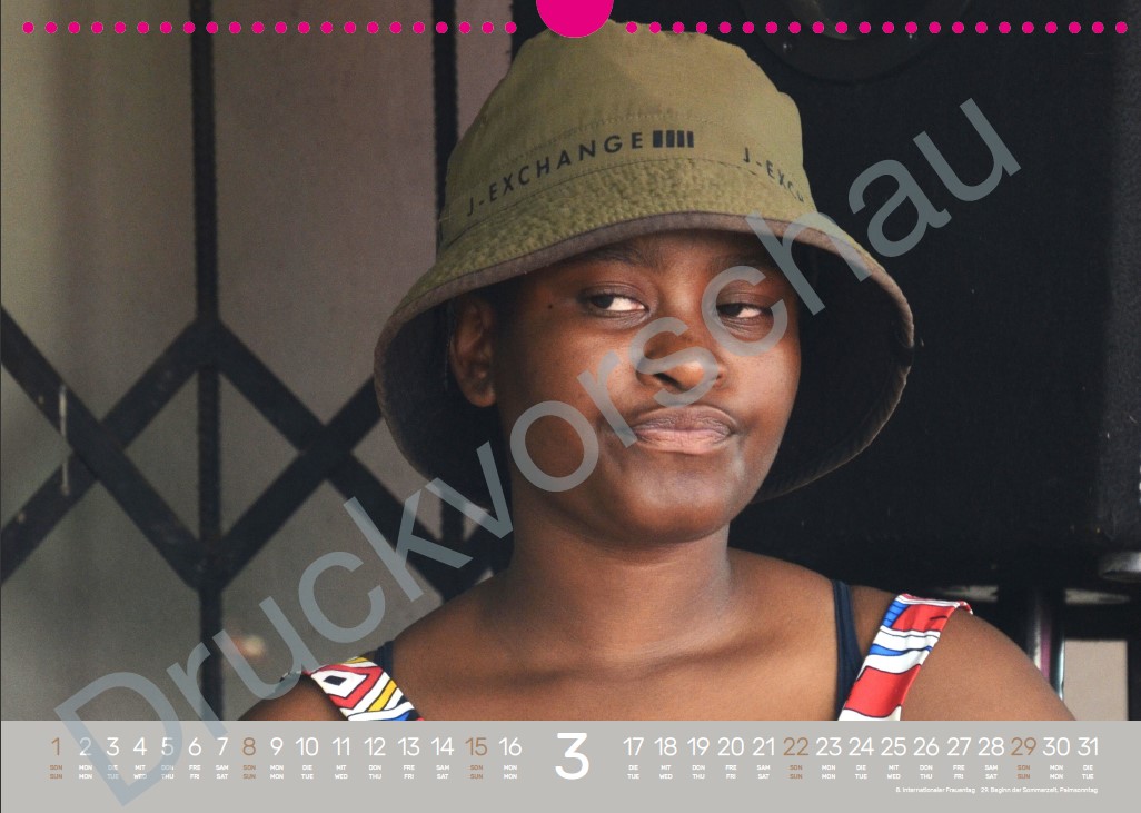 Unser Kalender zeigt in diesem Jahr besonders viele selbstbewusste Frauen und Mädchen aus eSitjeni, wie sie leben, wie sie feiern.